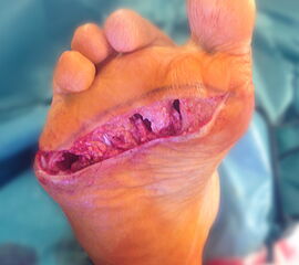 Auch bei Malum perforans ohne floride Infektion durchführbar.