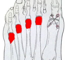 Tillmann K, Rüther W. Die Korrektur typischer rheumatischer Deformitäten der Zehen II bis V Operative Orthopädie und Traumatologie (1990) 2:169-177