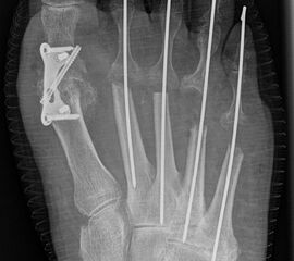 In seltenen Fällen ist eine physiotherapeutische Mobilisation des ersten Strahls indiziert, wenn ein gelenkserhaltendes Verfahren eingesetzt wurde. Im Bereich der Kleinzehen wird nach Entfernung der K-Drähte üblicherweise keine Physiotherapie eingesetzt.