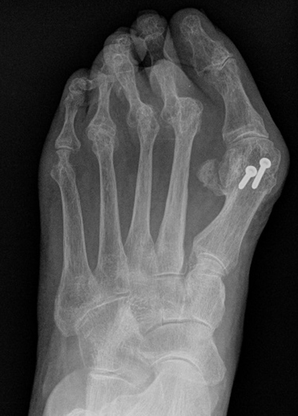 Relativ schnelle Belastbarkeit in Abhängigkeit des Eingriffes am ersten Strahl, da keine metatarsalen Osteotomien heilen müssen (viele Rheumapatienten haben Probleme an der oberen Extremität und können eine längere Ent- oder Teilbelastung an Unterarmgehstützen nicht umsetzen). Auch führt die medikamentöse Therapie, insbesondere Biologicals, häufig zu einer Verzögerung der Knochenheilung 22.
