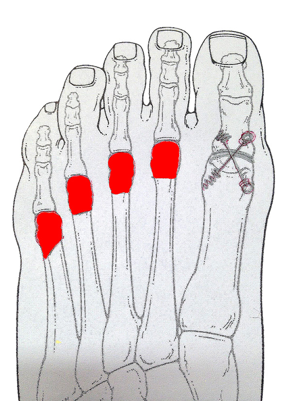 Verlust von Zehen, insbesondere erhöhtes Risiko nach Voroperationen.