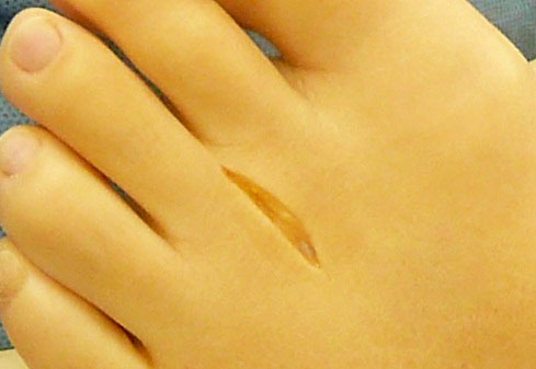- Über einen Schnitt ist der Zugangsweg zu nebeneinanderliegenden Zehenzwischenräumen möglich