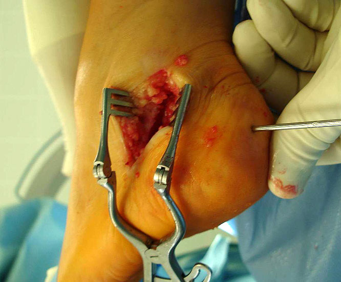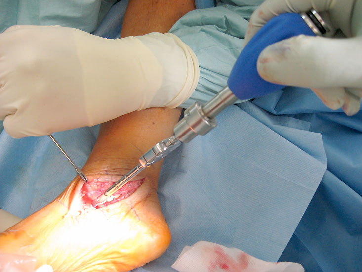Störende Knochenkante am Calcaneus lateral (cave: Abschrägen)
