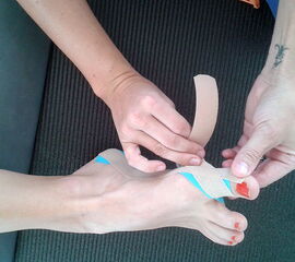 Anmerkung: Die klinische Wirksamkeit von kinesiologischen Tapes ist fachlich umstritten und nicht durch Studien wissenschaftlich erwiesen.