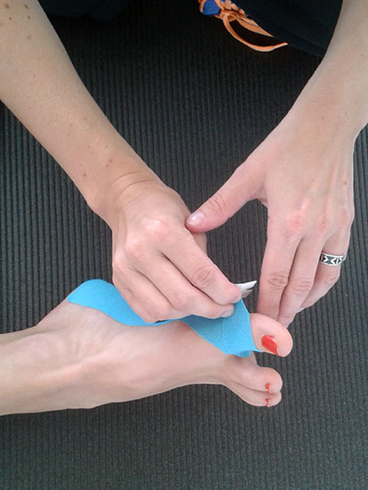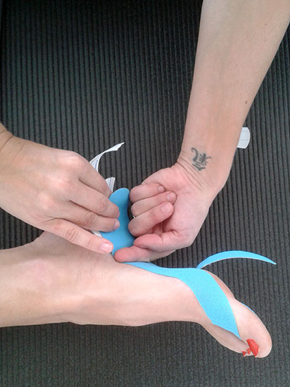 Sind oben genannte Kontraindikationen abgeklärt, kann das Tape angebracht werden.