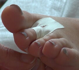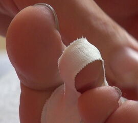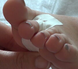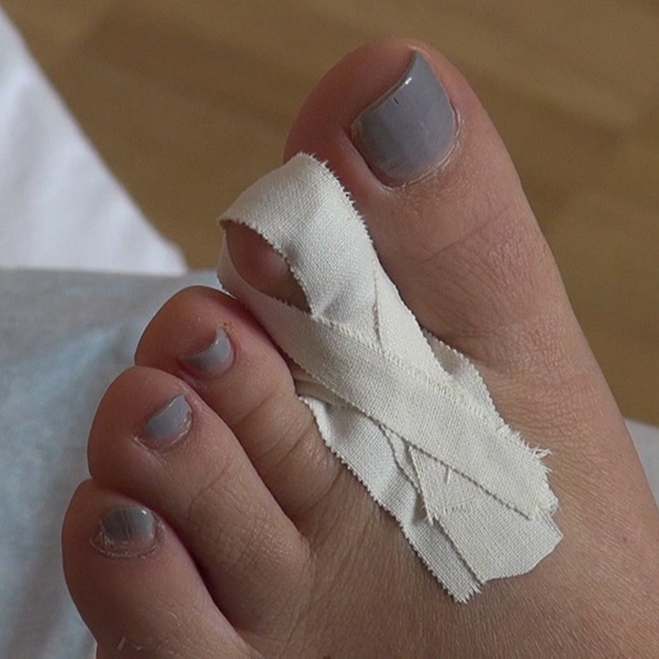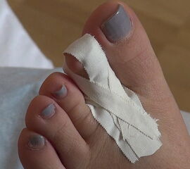 Zehenverband nach minimalinvasiver Kleinzehenkorrektur
