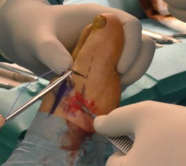 - Vollständiger Erhalt der Gelenkkapsel und somit auch keine Kompromittierung der Durchblutung des Metatarsaleköpfchens.