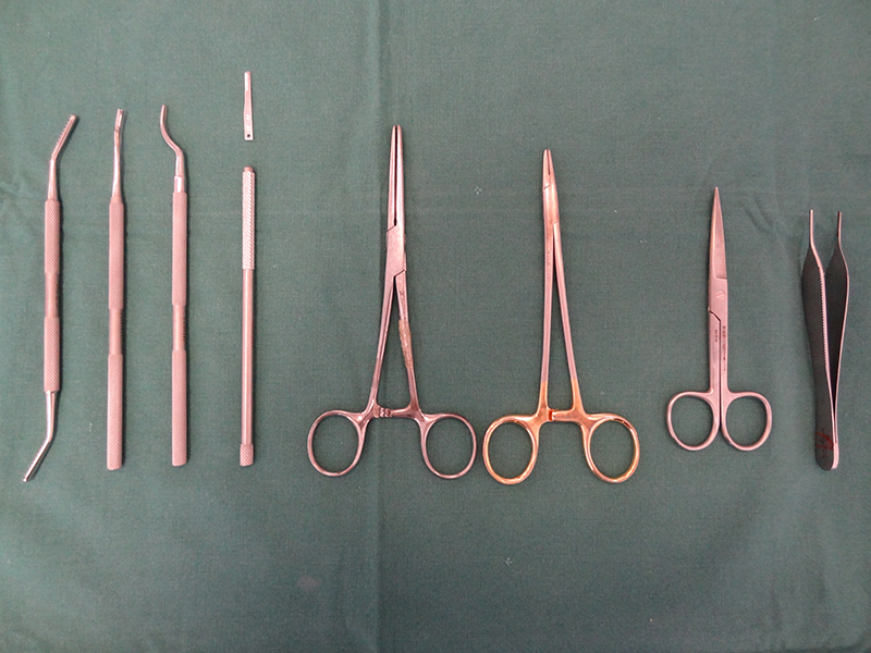 - Gebogene Miniklemme bzw. Miniraspatorium.