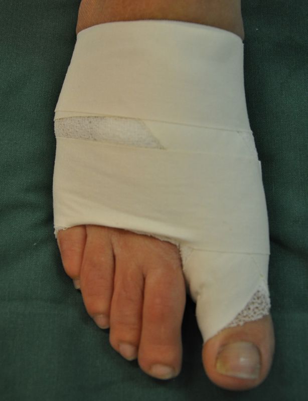 - Aufwendigere Nachbehandlung als bei offenen Operationen. Insbesondere bei der Kombination mit einer distalen Osteotomie sind die korrigierenden Tapeverbände für den Therapieerfolg wichtig und sollten nur von Operateur oder speziell geschultes Personal durchgeführt werden.