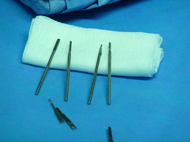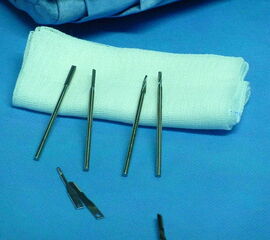 - MIS Fräsen, im Kleinzehenbereich meist 2mm tubulär mit 12mm Fräskopflänge, zusätzlich gel. konischer Fräsaufsatz
