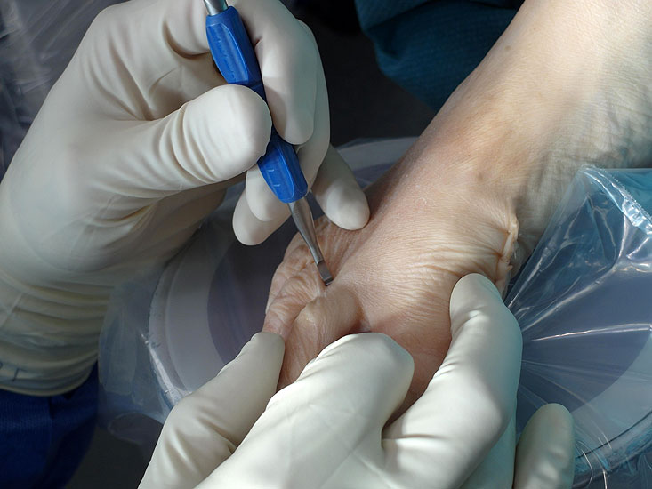 Bei der klinischen Untersuchung finden sich schmerzhafte Hyperkeratosen oder Ulzerationen. Derartige Veränderungen finden sich auch über knöchernen Vorsprüngen im Zehenbereich und können ebenso wie einige zu einer Zehenfehlstellung führende Knochendysplasien minimalinvasiv mit den nachfolgend aufgeführten Vorgehensweisen therapiert werden.