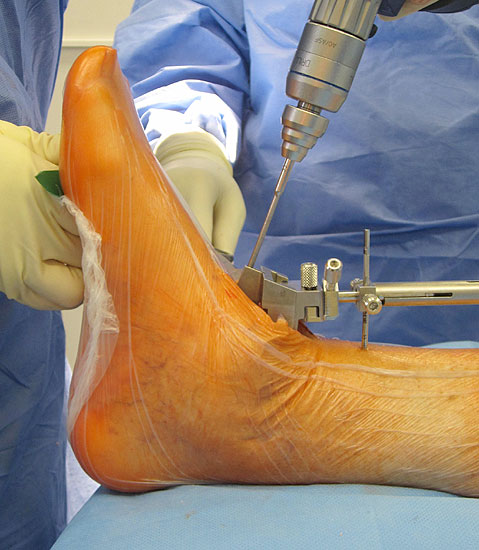 - 4,5 mm od. 7,0 mm durchbohrte Schrauben bei zusätzlichen knöchernen Rückfußkorrekturen oder Arthrodesen.
