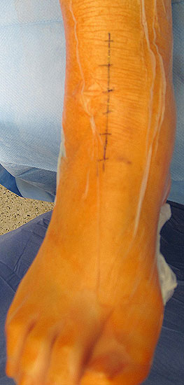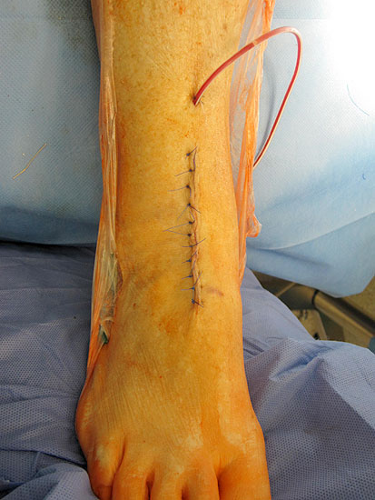 - Stenose/Verschluß der A. dorsalis pedis im Rahmen des schichtweisen Wundverschlußes mit Entwicklung einer Wundheilungsstörung.
