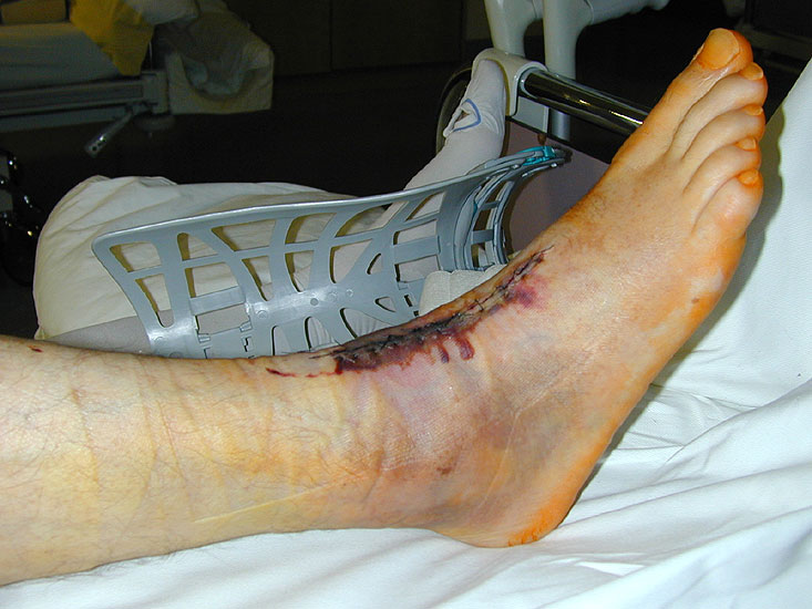 - Schlechte Weichteildeckung am distalen Unterschenkel, insbesondere ventrales Sprunggelenk.