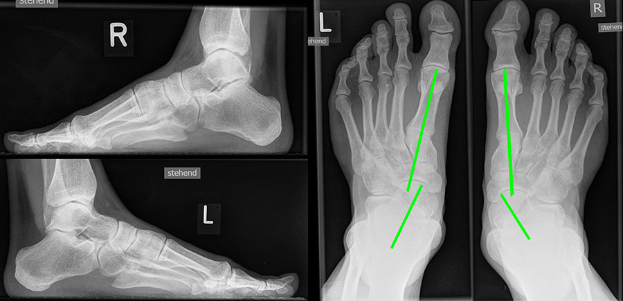 Bei Insuffizienz der tibionavicularen Bandanteile oder des Spring-Ligaments zeigen die konventionellen Aufnahmen eine Konstellation wie bei einer Tibialis posterior Insuffizienz mit Vorfußabduktion, eingesunkenem Längsgewölbe und vermehrtem Rückfußvalgus (Abbildung 3).