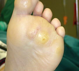 Aufgrund multipler betroffener Gelenke und häufig bestehenden Komorbiditäten werden die Symptome an den Füßen oft erst relativ spät wahrgenommen, daher ist es sinnvoll, den RA-Patienten immer gezielt nach Beschwerden an den Füßen zu befragen und diese generell mit zu untersuchen.
