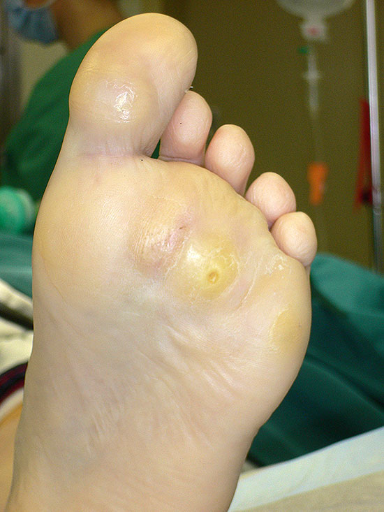 Ganz wichtig bei einem Befall der Füße ist die orthopädietechnische Versorgung mit Einlagen bzw. Schuhzurichtungen. Orthopädische Schuhe sind nur bei Kontraindikationen zu operativer Sanierung indiziert.
