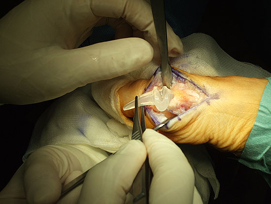 Endoprothesenversorgung des Großzehengrundgelenks mit einem Swanson-Silastik-Spacer