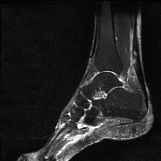 In Abhängigkeit des gesamten klinischen Bildes und der Vorgeschichte kann ein MRT z.B. zum Ausschluss einer Stressfraktur oder Ruptur der Plantarfaszie erforderlich werden. Es hat sich bewährt, in Fällen eines mehrmonatigen Krankheitsverlaufes und sonographisch verdickter Plantarfaszie >8mm (Normwert <4mm) vor Therapiebeginn ein MRT zum Ausschluss von Teilrupturen durchzuführen. Obwohl auch in diesen Fällen eine Stoßwellentherapie erfolgen kann, ist eine derartige Information aus juristischen Gründen von Bedeutung.
