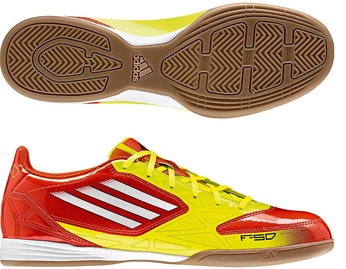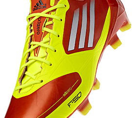 Der ursprünglich für die Weltmeisterschaft 2010 entwickelte F50 adizero™ ist mit nur 165 Gramm der derzeit leichteste Fußballschuh auf dem Markt. Moderne Designelemente lassen sich mit synthetischen Materialen gut umsetzen, wie hier am Beispiel eines Produktes aus der laufenden Saison gezeigt (Foto: mit freundlicher Genehmigung der adidas AG).