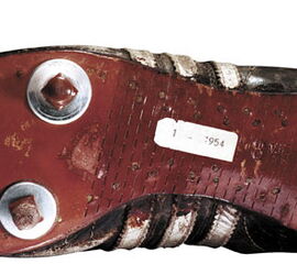 - Synthetische Materialien ermöglichen eine mechanisch effektive Verbindung zwischen Obermaterial und Außensohle. Dies führt dazu, dass der gesamte Schuh als mechanische Einheit betrachtet werden kann und die Stabilität nicht mehr ausschließlich durch die Sohle bestimmt wird. Stabilisierende Elemente können nun auch im Obermaterial platziert werden (z.B. stabilisierende Bänder für zusätzlichen Halt und Stabilität bei seitlichen Bewegungen).