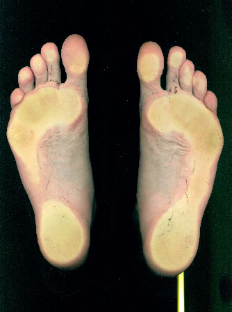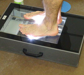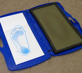 Auf Abbildung 11 ist erkennbar, welche Informationen aus dem Blauabdruck gewonnen werden können. Die elektronische Variante des Blauabdrucks ist der 2D Fußscan (Abb. 10 und 11). Dieser liefert ein digitales Foto des belasteten Fußes auf einer Glasscheibe. Das der Bilderstellung zu Grunde liegende Verfahren ist sehr ähnlich einem Büroscanner.