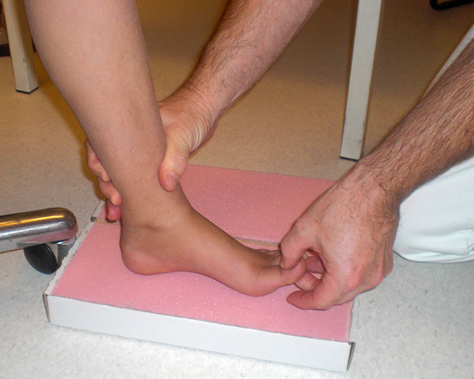 Vor der Einlagenversorgung erfolgt eine Untersuchung des Fusses mit Diagnostik der zu Grunde liegenden Störung. Dabei werden das Maß – und Modellverfahren, die Materialkombination, sowie die funktionellen Eigenschaften der individuellen Einlagenversorgung festgelegt.