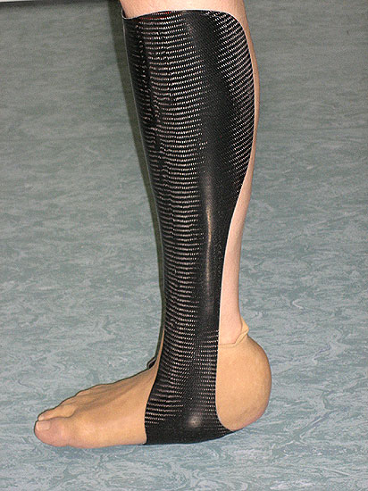 b) Ziel einer Prothesenversorgung bei Rückfußstümpfen oder sehr kurzen Fußwurzelstümpfen ist neben der guten kosmetischen Versorgung die Ermöglichung eines leistungsfähigen Gangs. Um diesen mechanischen Anforderungen gerecht zu werden, muss die prothetische Versorgung bis unter das Knie reichen. Die immer wieder zu sehende halbhohen Prothesenbauarten verursachen regelmäßig Beschwerden, da die auftretenden Drücke der Bewegungsdynamik auf eine zu geringe Fläche verteilt werden.