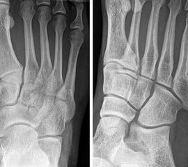 Frakturen der Ossa metatarsalia (MT) gehören zu den häufigsten Frakturen des Fußes. Ca. 50% aller MT Frakturen sind Brüche des 5. Mittelfußknochens (MT V). Die Inzidenz der MT V Frakturen wird mit 67 auf 100.000 Einwohner pro Jahr beschrieben 12. Die Mehrzahl der MT V Frakturen sind Frakturen der MT V Basis 1.
