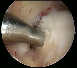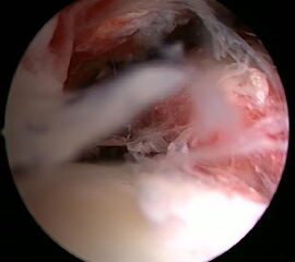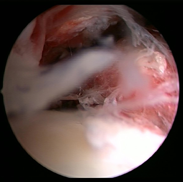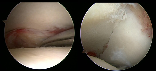 Ein aktuelles systematisches Review zur arthroskopisch-assistierten Frakturversorgung (AORIF) am Sprunggelenk identifizierte bei 495 von 782 Patienten (63,3%) chondrale Verletzungen 54. Weder durch die klinische Untersuchung noch mit konventionellen Röntgenaufnahmen oder mittels CT-Bildgebung lassen sich diese Verletzungen zuverlässig diagnostizieren. Aus diesem Grund rückt die arthroskopisch-assistierte Frakturversorgung am oberen Sprunggelenk zunehmend in den Fokus. Die Arthroskopie ermöglicht im Rahmen der Frakturversorgung sowohl die Kontrolle der Reposition als auch die Beurteilung und Therapie von intraartikulären Pathologien. Während sich die arthroskopisch-unterstützte Versorgung einiger Frakturen bereits etabliert hat (z.B. proximale Tibiafraktur) gehört der Einsatz der Arthroskopie bei der Frakturversorgung des oberen Sprunggelenks in den allermeisten Kliniken noch nicht zum Versorgungsalltag 155 Im Gegenteil, in einer aktuellen amerikanischen Datenbankanalyse des United Healthcare Orthopedic Datasets wurden zwischen 2007 und 2011 insgesamt 32 307 Patienten identifiziert, die mittels ORIF an einer Sprunggelenksfraktur versorgt wurden. In weniger als einem Prozent erfolgte eine arthroskopisch-assistierte Versorgung 55. Dem gegenüber stehen arthroskopische Studien der vergangenen Jahre, die zeigen konnten, wie häufig es zu intraartikulären Verletzungen bei Sprunggelenksfrakturen kommt. Das Risiko für diese intraartikulären Begleitverletzungen nimmt mit der Komplexität der Fraktur zu 5657. Es liegt also nahe, dass bei komplexeren Frakturen die Durchführung einer Arthroskopie im Rahmen der Frakturversorgung einen positiven Effekt auf das Behandlungsergebnis hat. Aus Sicht der Autoren sollte es Ziel für die Zukunft sein, die Frakturtypen zu identifizieren, die von einer arthroskopisch-assistierten Frakturversorgung profitieren. Die diagnostische Arthroskopie mit dem Ziel der gleichzeitigen arthroskopischen Therapie ist in der aktuellen S2-Leitlinie bereits eine Level-1b-Empfehlung. In den Abbildungen 20 – 30 ist schrittweise unser Vorgehen zur arthroskopisch assistierten Versorgung einer Trimalleolarfraktur dargestellt.