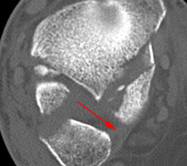 Es ist zu beachten, dass bei der Versorgung der Syndesmoseninstabilität bisher viele Fragen nicht eindeutig beantwortet sind. Dies beginnt mit der Auswahl des Testverfahrens zur Überprüfung der Instabilität und dem Nachweis der Korrekten Reposition der Fibula in der Inzisur. Auch die Wahl des Implantates, sowie die notwendige postoperative Bildgebung sind Gegenstand anhaltender Diskussionen. Bekannt ist, dass Syndesmosenverletzungen in bis zu 23% der OSG-Frakturen auftreten und dass die anatomische Reposition der distalen Fibula in die Tibiainzisur eine hohe prognostische Relevanz hat 33. Allerdings ist die Kontrolle der Reposition durch die variable Form und Tiefe der Tibiainzisur nur anhand zweidimensionaler Röntgen-Aufnahmen intra-operativ erschwert. Die Tiefe der Inzisur variiert zwischen 1 mm und 7,5 mm und weist nur in 60-75% eine konkave Form auf 34. Auch die Wahl des Implantates ist Grund für andauernde Kontroversen. Standardmäßig erfolgt bisher in den meisten Kliniken die Versorgung mittels Stellschrauben-Osteosynthese. Allerdings konnten verschiedene Studien zeigen, dass die Fehl-Repositionsrate nach Stellschrauben-Versorgung höher lag als nach einer Versorgung mittels Tight Rope 3536. Auch, ob die postoperative CT-Bildgebung zur Stellungskontrolle notwendig ist und wenn ja, ob der Vergleich zum unverletzten Bein durchgeführt werden sollte, ist Gegenstand intensiver Diskussionen. Postoperativ wird eine insuffiziente Reposition in bis zu 38% beobachtet 33. Man muss aber vermuten, dass diese insbesondere mit der konventionellen Bildgebung nicht zuverlässig erkannt werden und somit ursächlich für persistierende Beschwerden sind. Bei knöchernen Syndesmosenausrissen an Fibula (Wagstaffe-Fragment) oder Tibia (Tubercule du Tillaux-Chaput) sollte eine direkte Versorgung mittels Schraubenosteosynthese oder mittels transossären Nähten angestrebt werden.