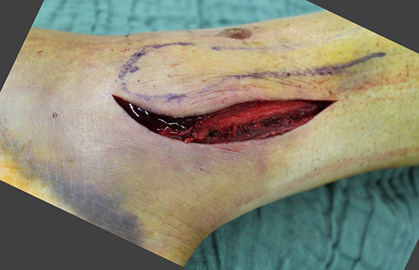 Gardner et al. konnten beispielsweise zeigen, dass die offene anatomische Reposition der Tibiahinterkante der Stabilisierung mittels Stellschraube überlegen war und gleichzeitig mit einer geringeren Rate an postoperativen Fehlstellungen der Fibula in der CT-Kontrolle einherging 2728. Aus Sicht der Autoren ist prinzipiell die Stabilisierung über eine direkte Reposition indiziert, wenn die Größe des Fragmentes dies erlaubt. Bei gleichzeitigem Vorliegen einer Fraktur des lateralen und/oder medialen Malleolus sollte zunächst die Versorgung der des Tibiahinterkantenfragments erfolgen. Dies erlaubt die radiologische Kontrolle der Reposition und Osteosynthese-Lage, welche durch eine zuvor aufgebrachte Fibula-Platte häufig erschwert ist 29. Dafür werden die Patienten in Seitenlage gelagert. Dies erlaubt die direkte Versorgung der posterioren Malleolusfraktur über einen posterolateralen Zugang 30. Das sehr kräftige Periost wird im Frakturverlauf inzidiert und aus den Frakturspalt entfernt, so kann eine anatomische Reposition erfolgen. Entsprechend der Fragmentgröße erfolgt entweder die Versorgung mittels Drittelrohrplatte in Antiglide-Technik oder eine Zugschraubenosteosynthese. Die Versorgung der Fibula-Fraktur gelingt über den gleichen Zugang. Zur Versorgung des medialen Malleolus wird der Patient auf den Rücken umgelagert. Dies kann bei entsprechender Vorbereitung ohne erneutes steriles Abdecken erfolgen. Durch dieses Vorgehen konnte im eigenen Kollektiv die Notwendigkeit einer Stabilisierung der Syndesmose mit Stellschraube/Tight Rope deutlich reduziert werden.