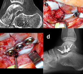 Unter Berücksichtigung der lokalen Anatomie, insbesondere der Gefäßanastomosen in Bereich des Sinus und Canalis tarsi sowie der Äste im Lig. deltoideum 1 und in Abhängigkeit von der Frakturmorphologie, stehen mehrere operative Zugänge und Osteosyntheseverfahren zur Auswahl. In der überwiegenden Mehrzahl sind mindestens zwei Zugänge für eine ausreichende Übersicht erforderlich. Wenn eine intraoperative 3-D-Röntgenbildgebung zur Verfügung steht, kann diese aufgrund der komplexen Frakturmorphologie sehr hilfreich sein.