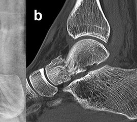 Bei peripheren Talusfrakturen werden meist die Beschwerden im Verlauf der Bandstrukturen angegeben 14. Sie werden nicht selten übersehen, weswegen insbesondere nach der Reposition von geschlossenen subtalaren Luxationen die Indikation zur weiterführenden Diagnostik – in diesem Falle der CT – großzügig gestellt werden sollte 7.