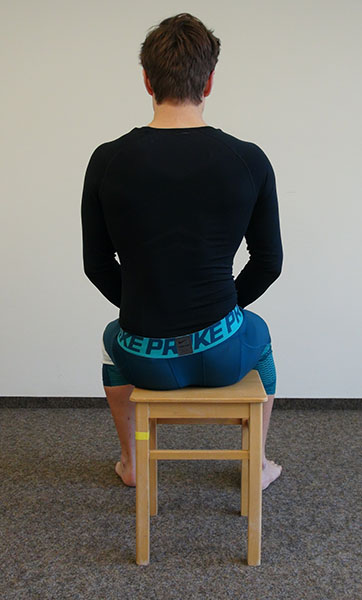 Aufrechter Sitz auf einem Stuhl, die Hände liegen seitlich am Becken.